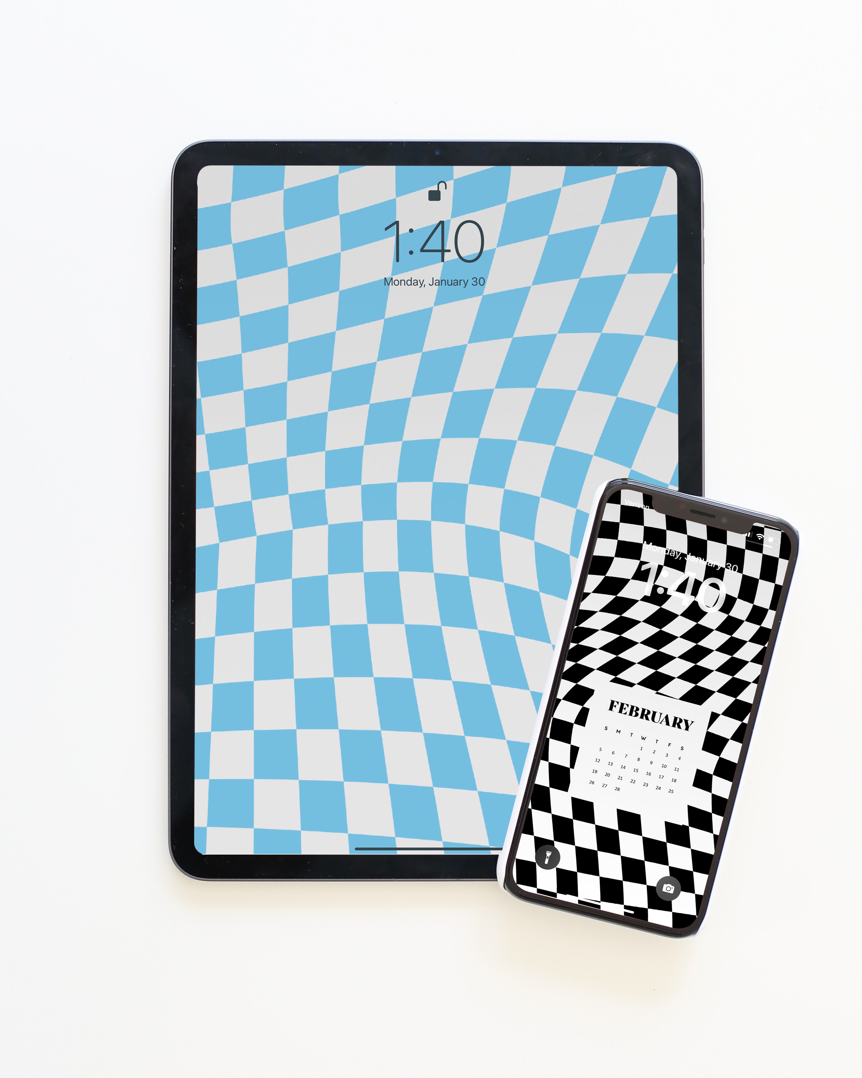 It's giving carnival fun house; it's giving Alice in Wonderland; it's giving ALL the energtic vibes we so desperately need this time of year. Add a free Wavy Checkerboard wallpaper to your phone or desktop then grab a product to match!
